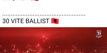 Tifozët e ekipit shqiptat Shkëndija në Tetotë, Maqedoninë e Veriut kanë festuar me një koreografi kuq e zi duke skuqur edhe qiellin me drita e fishekzjarre.