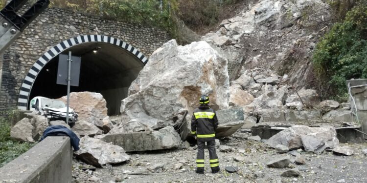 Një rrëshqitje masive dheu është regjistruar në rrugën shtetërore 36 Lecco-Ballabio ku disa gurë kanë rënë në rrugë dhe kanë bllokuar hyrjen në tunelin e Giulia. Prandaj rruga për në Valsassina është ndërprerë ka edhe të plagosur. Këto shkëmbinjë masiv janë shkëputur nga Mali “Due Mani” dy duart.