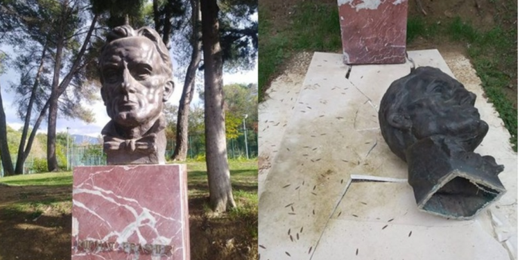 Busti u dëmtua dy netë më parë nga persona të paidentifikuar. Ndërsa ai qëndron prej 4 vitesh tek kodrat e liqenit pranë vellëzërve Frashëri.