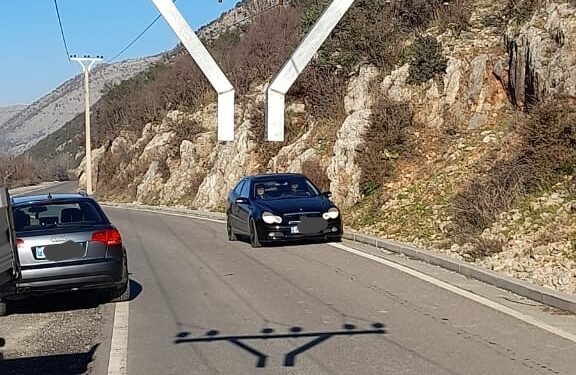 Një automjet (tip furgon) është përplasur me një shtyllë të tensionit të mesëm, duke e dëmtuar atë (siç shihet në fotot).