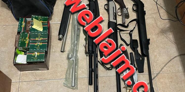 WebLajm sjell fotot nga aksioni dhe kontrollet në 4 vila në Durrës. Snajper, Shotgan, Pushkë gjahu, thika sharrë, fishek, dylbi.