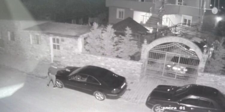 Në pamjet e siguruara nga WebLajm shihet një person me një bidon me benzinë, i cili e hedh sipër kofano dhe pasi bën dy tentativa ndez zjarrin me çakmak.
