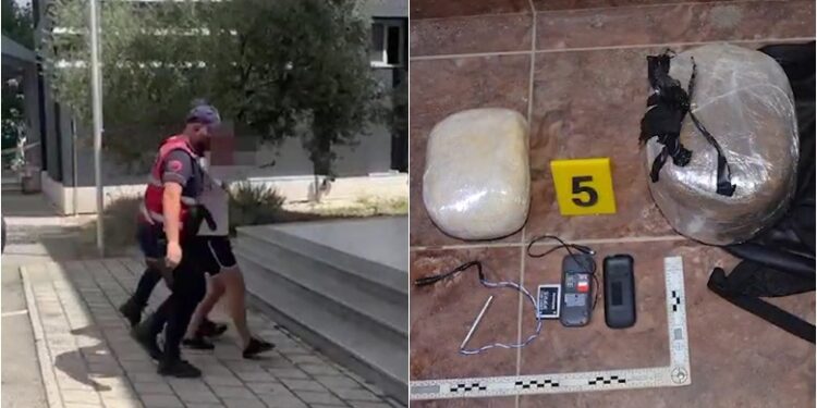 Me 2 çanta me lëndë plasëse artizanale (rreth 21.3 kilogramë), të montuara për shpërthim në distancë dhe me bidona me lëndë djegëse (benzinë), në 2 automjete, kapet në flagrancë dhe vihet në pranga 29-vjeçari, i dënuar më parë për dhënie ndihmë 4 shtetasve, për largim nga IEVP-ja.