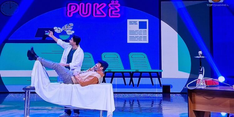 I tepërt ky Humor në Portokalli ku një zonjë Pukiane në skenarin e Humorit lind “online” pasi në spital paraqitet burri fanatik!