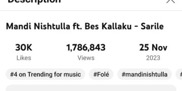 Nuk ka mbushur 72 orë e pubkikuar online, vetëm 3 ditë më parë kënga e re e Mandi Nishtulla (Mandela Mustafa) dhe Bes Kallakut thyen rekordet në youtube.