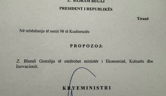 I njohur si një nga drejtuesit dhe menaxherët më të suksesshëm të ndërrmarjeve shtetërore si ajo e Transportit Rrugor, Blendi Gonxhja pritet që pas dekretit të Presidentit Bajram Begaj të marrë postin Ministror. Kryeministri Rama e ka propozuar Ministër Gonxhen duke shkrirë në një digaster Ekonominë dhe Kulturën.