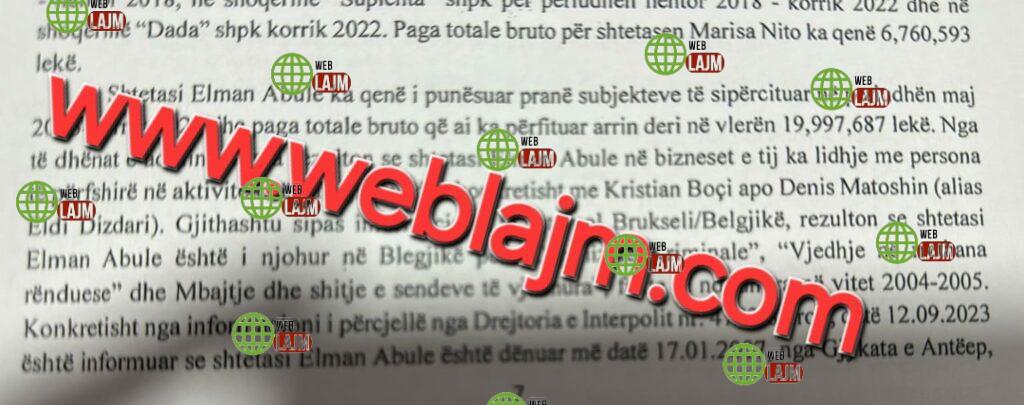 Në një sërë personash e subjketesh në dokumentin e siguruar nga weblajm.com thuhet se Abule është lidhje e persoanve me aktivitetet të paligjshme si Boçit dhe shtetasit Denis Matoshi njohur edhe si Eldi Dizdari.