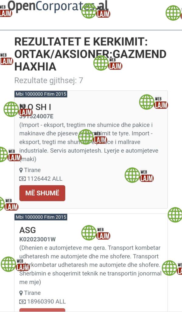 Të dhënat e Pronësisë dhe aksioneve për bizneset e Gazmend Haxhia / nga Databaza Open Corporates Albania