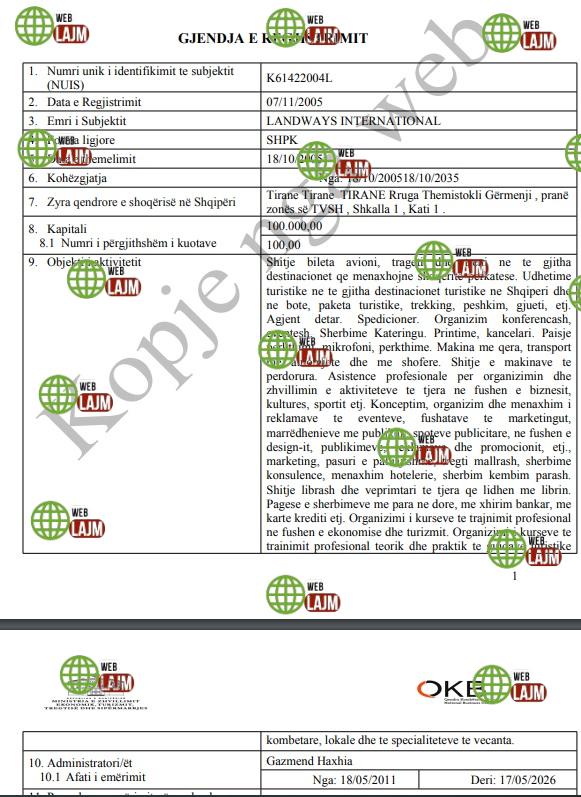 Ky prokurim rezulton i njëjtë me atë të prokuruar nga Ministria e Turizmit dhe Mjedisit, për të njëjtin event atë të quajtur “Festa”, me përjashtim të zërit “darkë”, duke u kontraktuar në të dyja rastet e njëjta shoqëri tregtare e quajtur “Landways International”, me ortak e administrator personin nën hetim Gazmend Haxhia dhe drejtor ekzekutiv Alfred Nikolla.