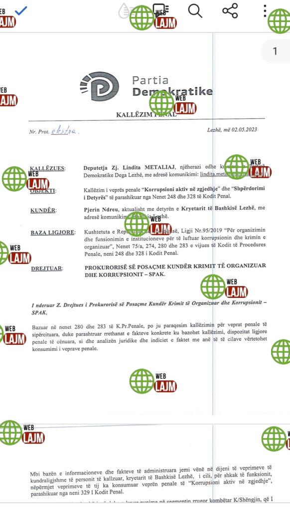 WebLajm ka mësuar se Spak po heton kryebashkiakun e Lezhës z.Pjerin Ndreu për veprëb penale shpërdorim detyre.