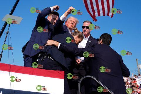 - Ish-presidenti Donald Trump u nxor nga skena pasi u rrëzua përtokë në fillim të një mitingu në Butler, Pensilvani, të shtunën mbrëma.