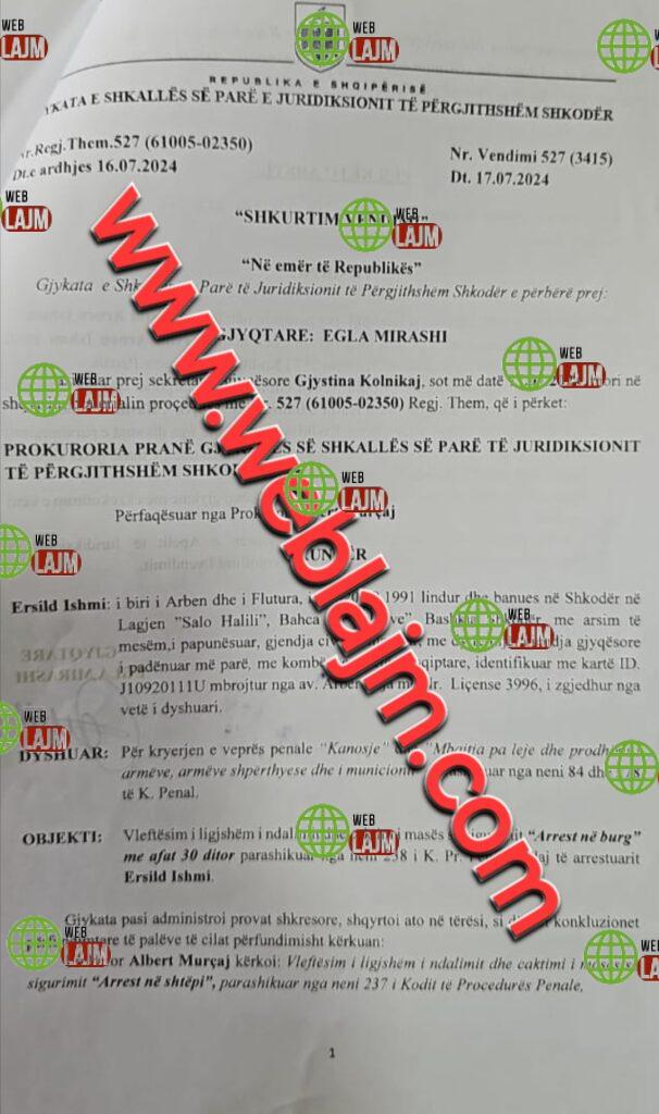 WebLajm ka siguruar ekskluzivisht vendimin e Prokurorisë dhe Gjykatës së Shkodrës të cilët më 17 Korrik 2024 kanë vendosur ta nxjerrin nga qelia duke i hequr prangat Ersild Ishmit.