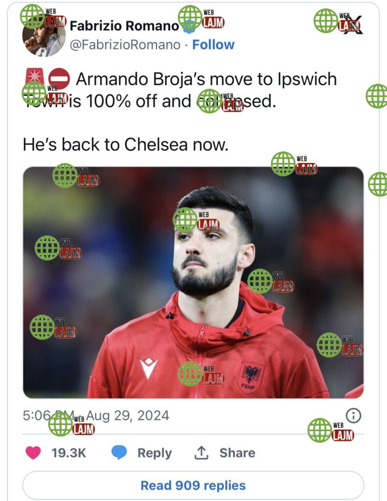 Edhe pse u përpoqën deri në fund që ta transferonin, Ipswich tashmë është dorëzuar 100%, teksa eksperti i merkatos, Fabrizio Romano ka konfirmuar se sulmuesi i Kombëtares shqiptare është rikthyer sërish te Chelsea.