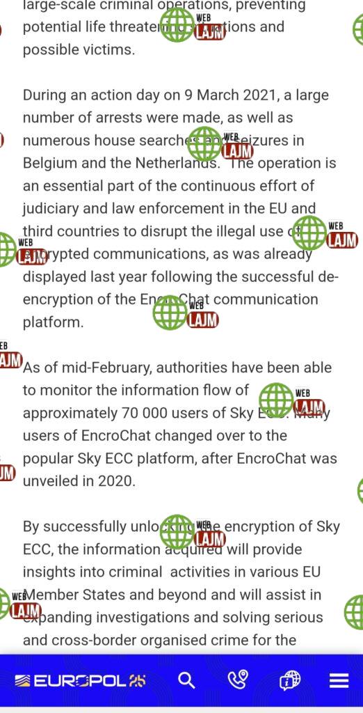 Zyrtarisht Europol në në deklaratë zyrtare thotë se komunikimet e enkriptuara sky dhe enchro janë goditur në vitin 2021 duke fikur serverat.