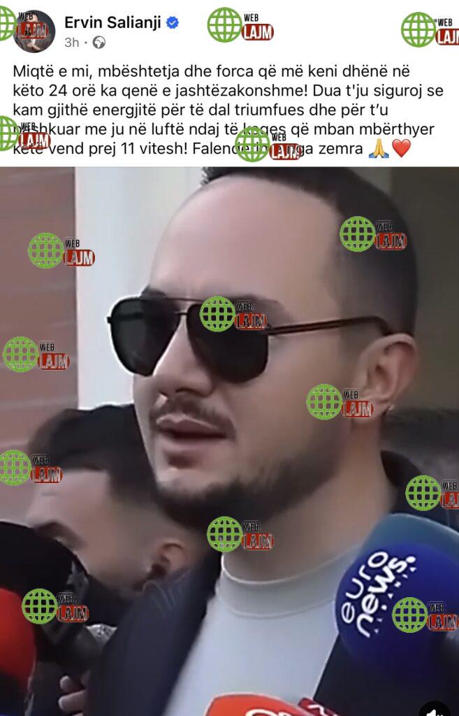 Dua t’ju siguroj se kam gjithë energjitë për të dal triumfues dhe për t’u bashkuar me ju në luftë ndaj të keqes që mban mbërthyer këtë vend prej 11 vitesh! Falënderime nga zemra”, shkruan Salianji në një postim në Facebook.