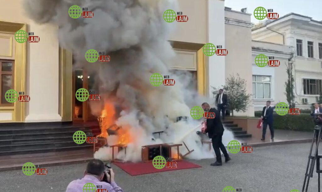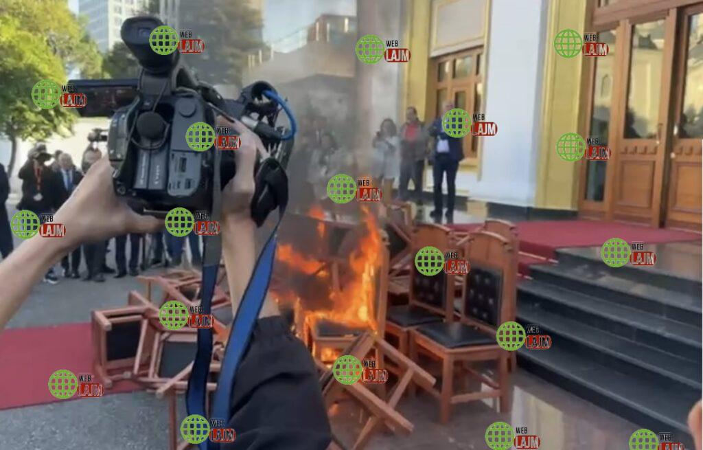 Pas kësaj, deputetët e opozitës kanë dalë jashtë sallës së Kuvendit, duke nxjerrë në oborr edhe të gjitha karriget e tyre, të cilave iu vendosën flakën.