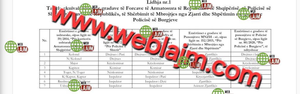 weblajm.com ka siguruar ekskluzivisht ekuivalentimin e gradave ku një kolonel ushtrie merr gradën drejtues i lartë apo drejtues i parë dhe mund të konkuroj për drejtor qarku pëegjatë kësaj jave.