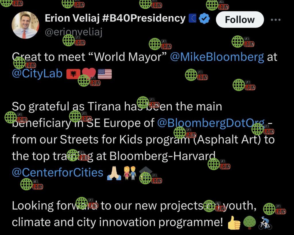 Veliaj takohet me Mike Bloomberg: Projekte të reja për të rinjtë, klimën dhe inovacionin!