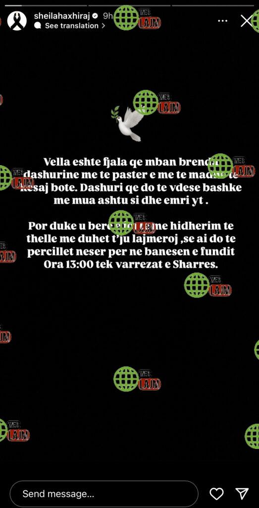 Këngëtarja Sheila Haxhiraj ka reaguar pas ngjarjes tronditëse me një status të ndjerë: