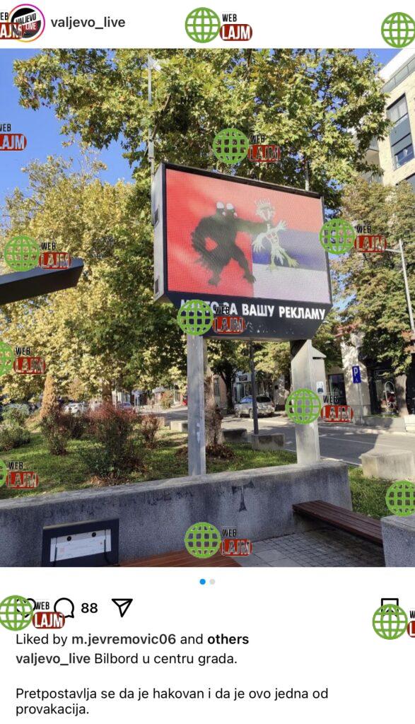 Fotografia është publikuar në Instagram nga faqja “valjevo_live”. “Në qendër të qytetit është shfaqur ky billboard. Besohet se është hakuar dhe konsiderohet si një provokim”-thuhet në postim.