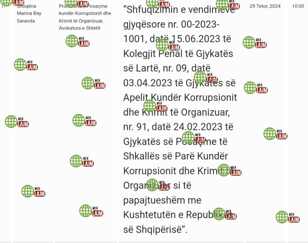 Masa e sekuestros është apeluar në të treja shkallët e gjyqsorit, por është lënë në fuqi duke miratuar vendimin e SPAK, nga GJKKO, Apeli GJKKO dhe Gjykata e Lartë. Ky hetim ndiqet nga prokuroria Monjola Kajana e cila gjatë hetimit kërkoi edhe vendosjen e masës së sekuestros.