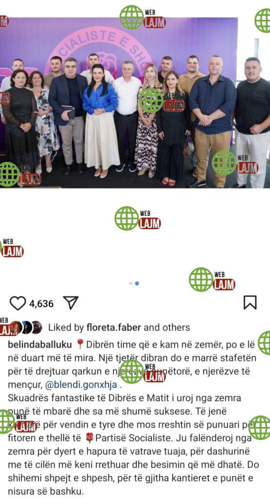 “Dibrën time që e kam në zemër, po e lë në duart më të mira. Një tjetër dibran do e marrë stafetën për të drejtuar qarkun e njerëzve punëtorë, e njerëzve të mençur, @blendi.gonxhja.