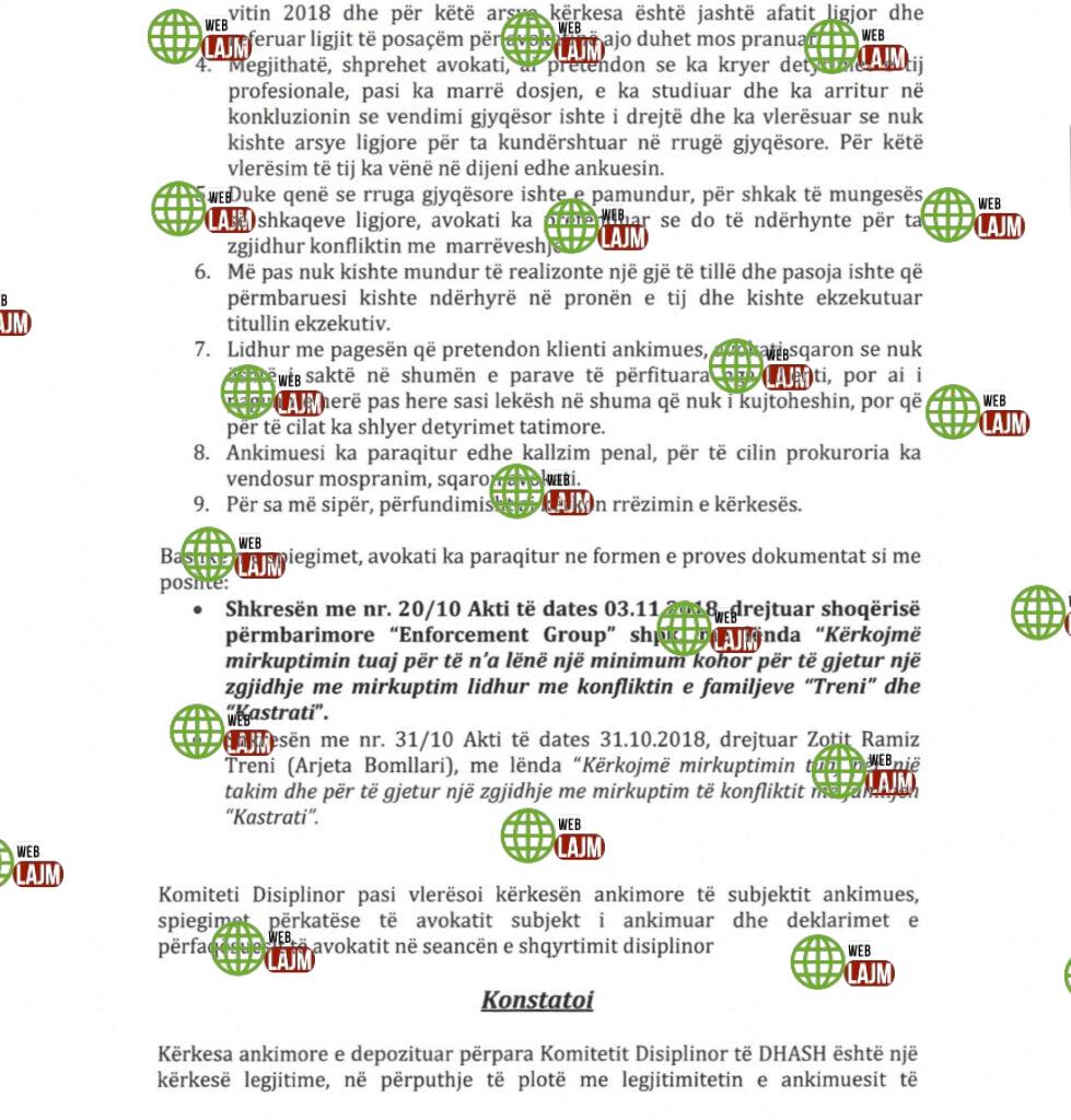 Komiteti Disiplinor ka treguar se ndaj këtij avokati ka pasur në mënyrë të përsëritur kërkesa për procedim disiplinor dhe në ngarkim të tij janë marrë masa disiplinore.