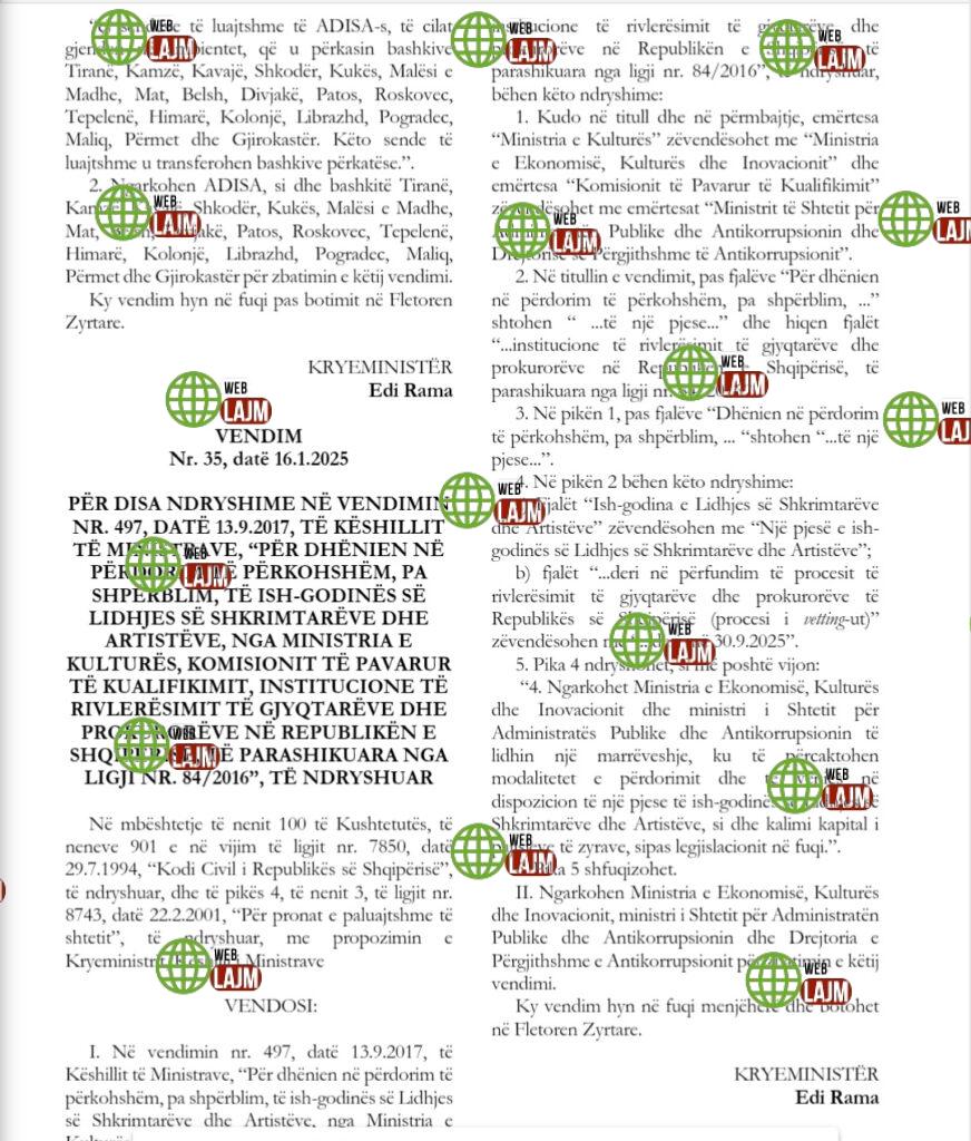 Me vendimin e qeversië nr.35 dt.16 Janqr qeveria tashmë ka vendosur të akomodojë aty stafin e Antikorrupsionit drejtuar nga Ade Pirdeni.