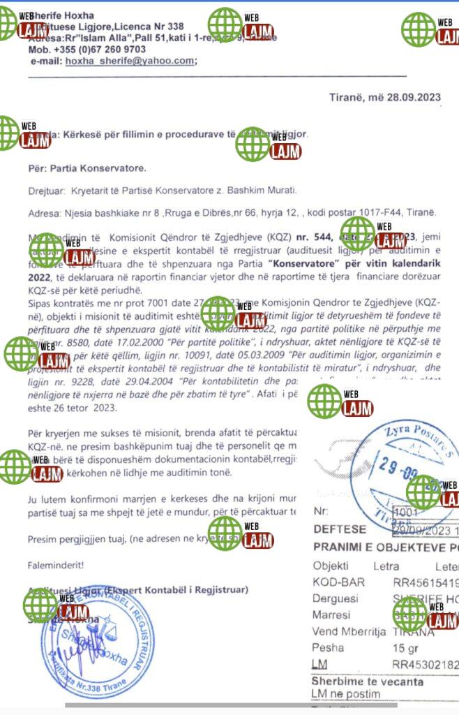 Ajo çka ngre hije dyshimi është një dokument ekskluziv i siguruar nga weblajm.com ku Partia Konservatore i është fshehur auditit financiar të KQZ pasi mori fonde.