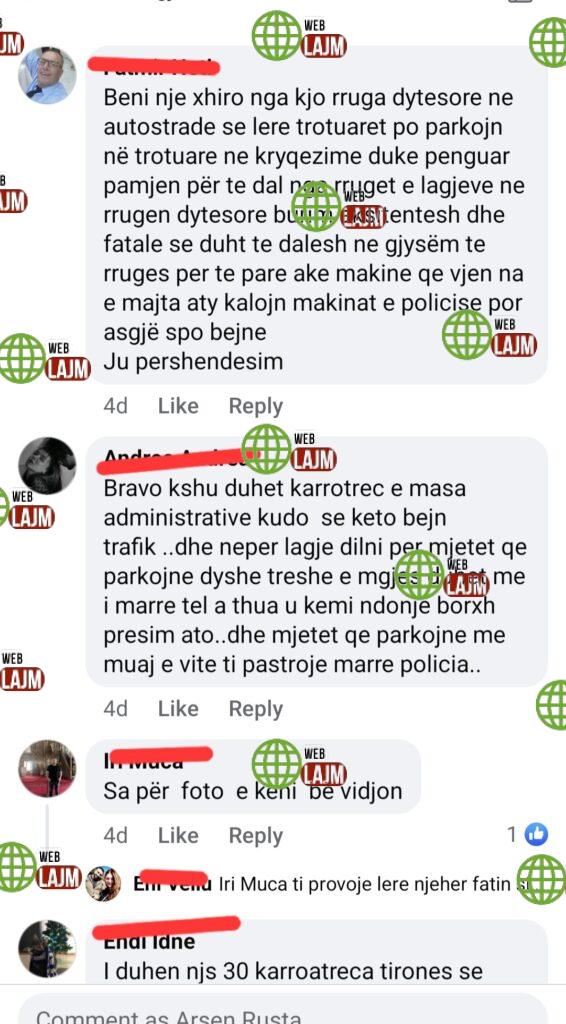 Asnjë nga drejtuesit e mejteve që parkojnë mbi trotuare, vend kalimet e karrocave dhe pedanat e invalidëve, vijat e bardha dhe dysh në kes të rrugëve sdo të tolerohen sqaroi policia për weblajm.com