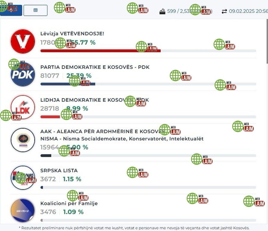 Kosova voton në zgjedhjet parlamentare, rezultatet paraprake
