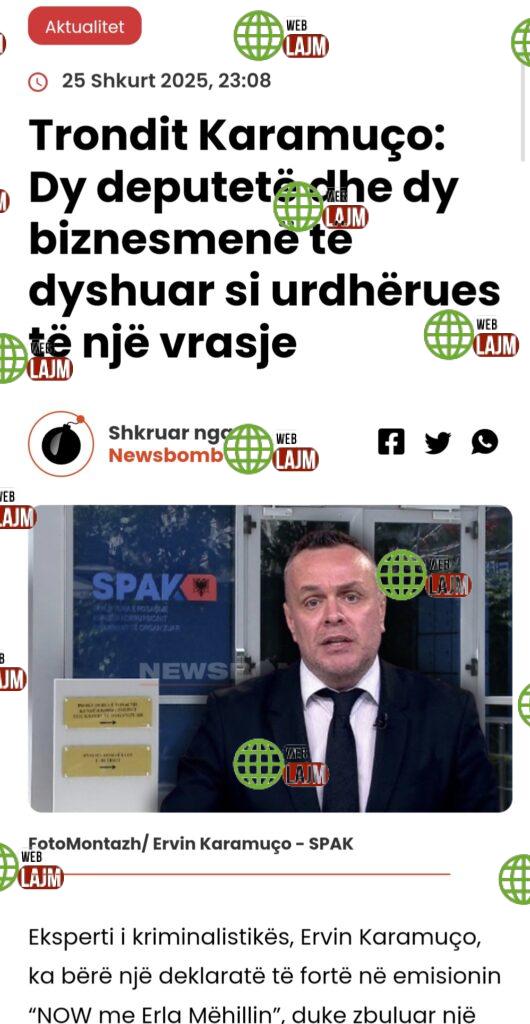 Por çdo gjë u amplifikua si fakenews nga gjithologu i krimeve Ervin Karamuço i cili për SPAK flet me kompetencë pa e ditur se ku hyhet e dilet. E aq më pak të jetë gaztear i akredituar pranë këtij institucioni apo “profesor” i SPAK.