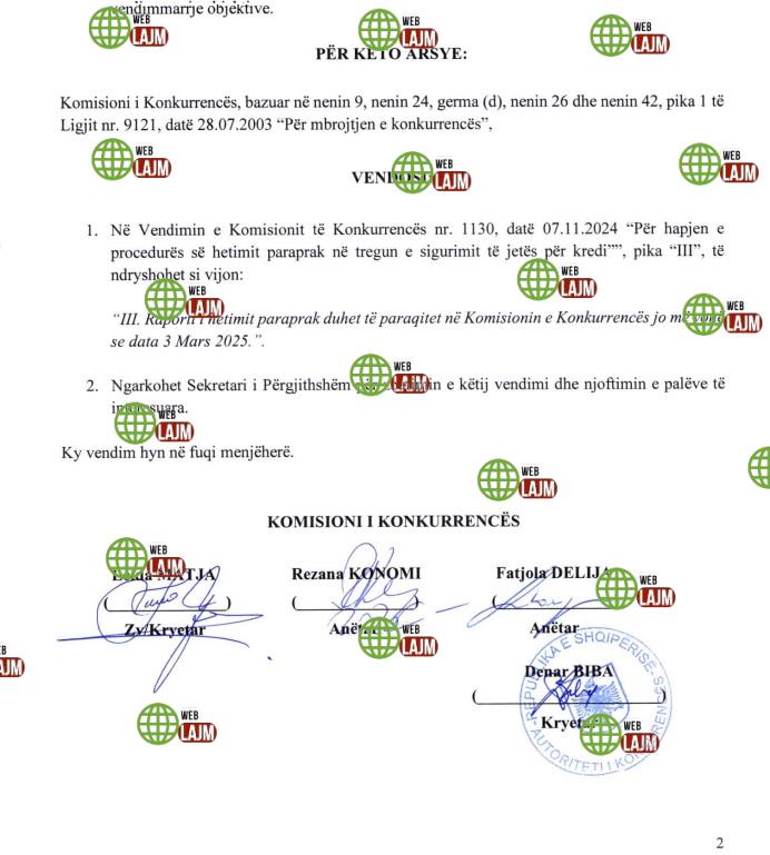 Më 27 nëntor 2024 Autoritet Konkurencës Njoftoi se: