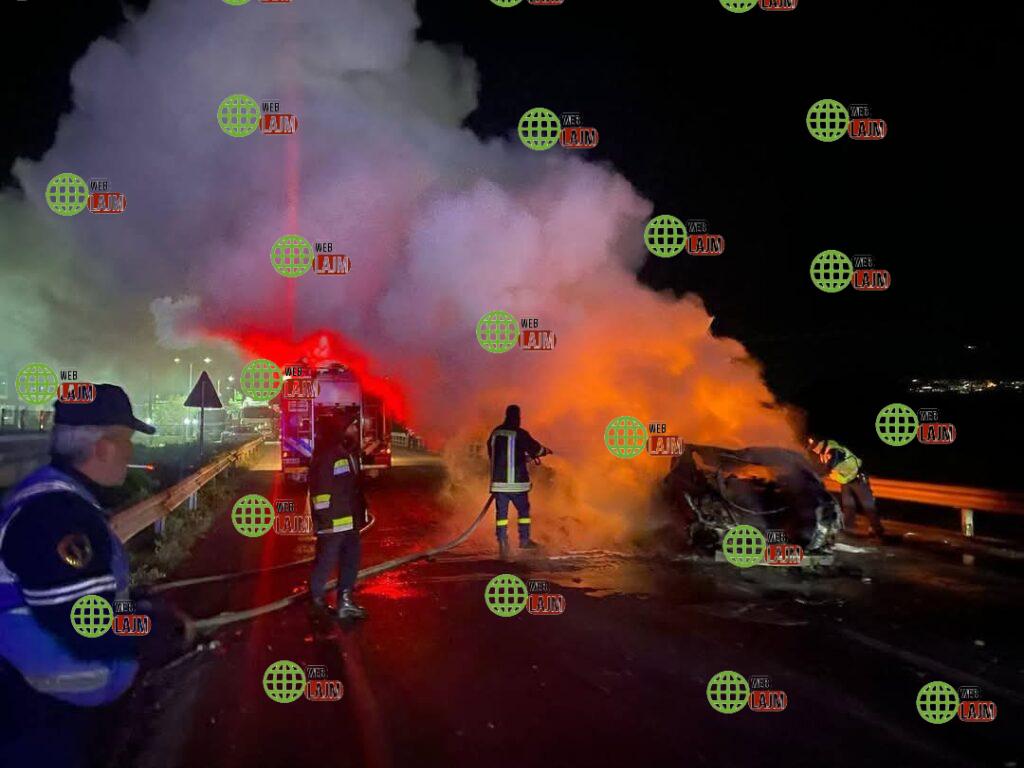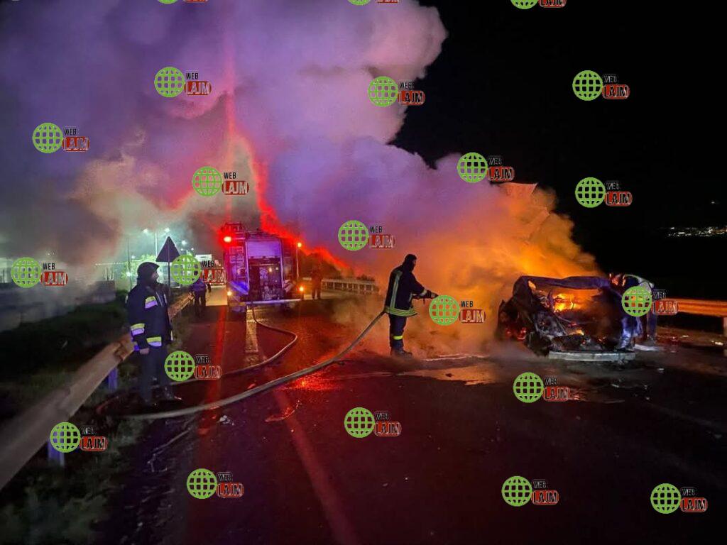 Një veturë e drejtuar nga një 25-vjeçar me 3 pasagjerë brenda, u përfshirë nga flakët e zjarrit pas përplasjes me një betoniere.