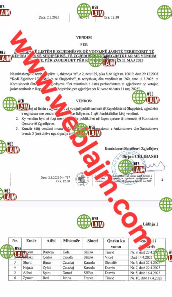 WebLajm.com ka siguruar vendimin e gjykatës së tiranës ku detyrohet KQZ tu dërgojë fletët e votimit me zarf.
