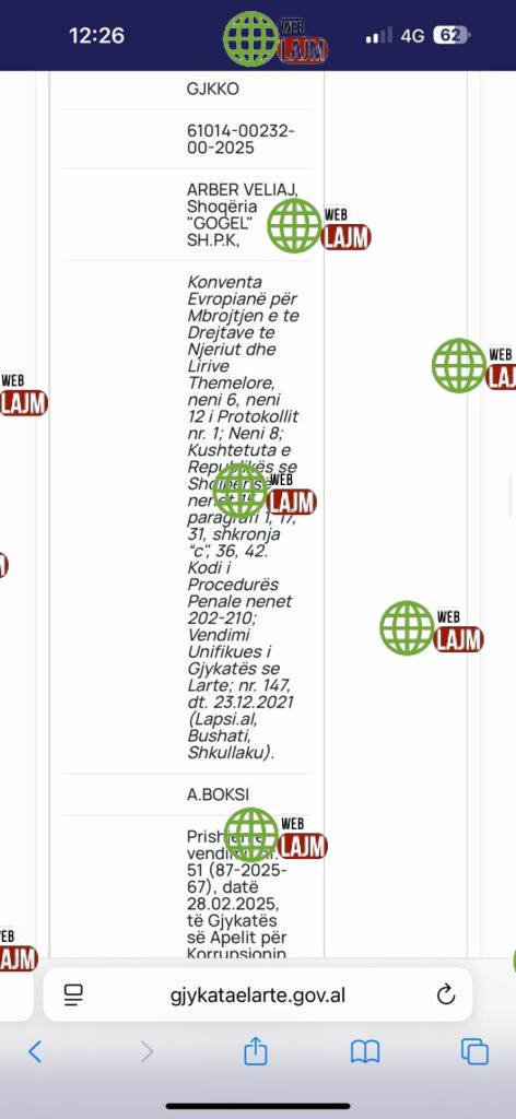 Gjykata e Lartë prishi vendimin e Apelit të Posaçëm për Arben Veliajn, i cili kundërshtoi sekuestrimin e materialeve nga ana e BKH-së, si dhe kontrollet e ushtruara nga agjentët në banesën e tij në dhjetor të vitit 2024.