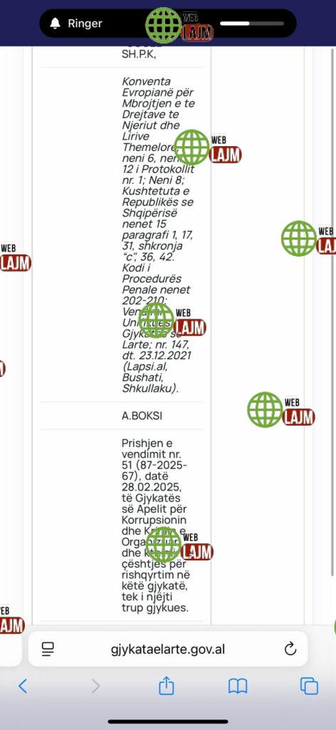 Objekti i padisë/akuzës: Pranimi i apelit. Konstatimi i cenimit te se drejtave te mbrojtjes per t’u njoftuar dhe per te qene te pranishme gjate aktit te kontrollit, si dhe te cenimit te privatesise se korrespodences, gjate ekzekutimit te vendimit nr. 698, dt. 05.12.2024, nga oficeret e BKH-se. Pezullimin e nderhyrjes ne privatesine e korrespondeces elektronike te shoqerise “Gogel” sh.p.k, pa nje vendim autorizues te gjykates, ne rast se autorizimi do te jepet, te tregohen kufijte e lejuar te nderhyrjes dhe te garantohet pandryshueshmeria e te dhenave, duke mbajtur kopje te klonuar te te dhenave elektronike dhe kopje te dokumenteve (blloqeve te shenimit). Kthimin fizik te sendeve te sekuestruara shoqerise “Gogel” sh.p.k.