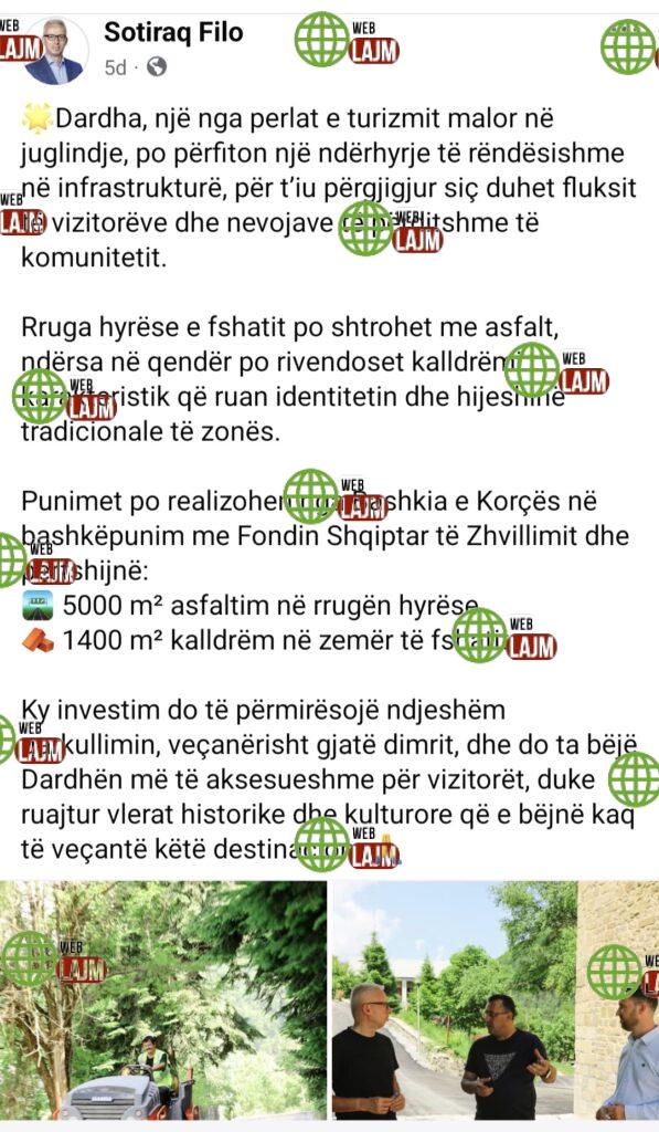 Është kryebashkiaku i Korçës Sotiraq Filo i cili në rrjetin e tij facebook ka reklamuar si një zhvillim zhdukjen e kalldrëmeve dhe shtrimin me asfalt.