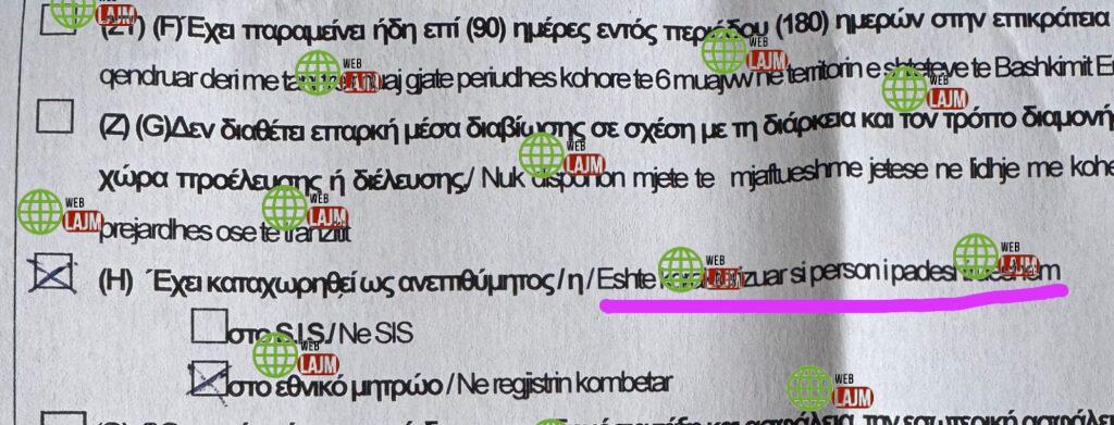 Më pas, gazetarit Hoxha i është vendosur kryq me stilolaps në pasaportë mbi vulën e policisë greke dhe i është kërkuar të largohet menjëherë nga territori grek.