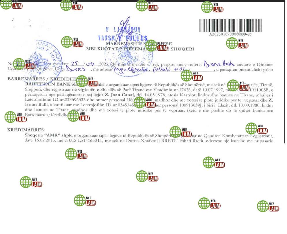 Balla ne shoqerinë “AMR” SHPK (barredhenes), ne favor te “RAIFFEISEN BANK” SHA