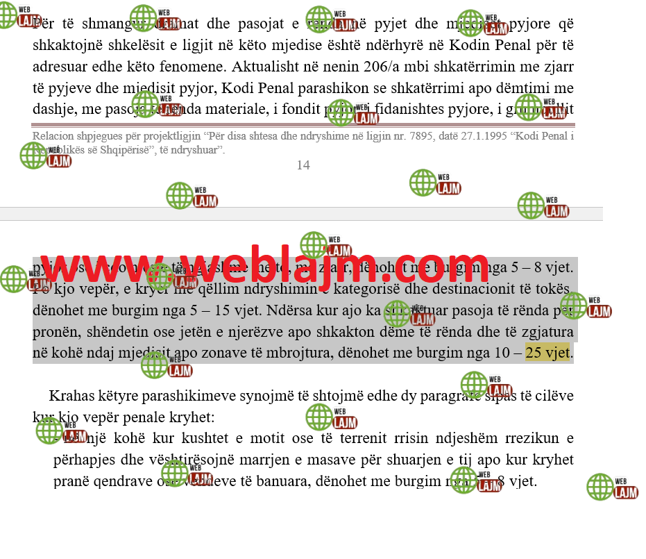 - Në zona të mbrojtura, parqe natyrore apo objekte të trashëgimisë kulturore, dënimi do të jetë nga 1 deri në 5 vjet burg.
