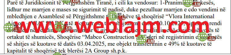 WebLajm.com ka siguruar vendimin e gjykatës së Tiranës që i heq të drejtën e votës kompanisë së Pacollit: