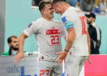 Dy shqiptarët Granid Xhaka e Xherdan Shaqiri pas fitores së Zvicrës ndaj Serbisë. Fitorja e Zvicrës 3 me 2 ndaj Serbisë u arrit edhe fal golit të Shaqirit. Ky rezultat...