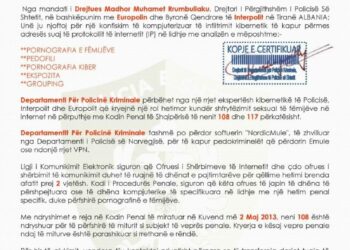 Një e-mail i pretenduar me një mandat gjykate, firmosur nën emrin e Kreut të Policisë Kriminale është risia e mashtrimit kompjuterik zbuluar nga njësia C në Policinë e Shtetit. Njoftim ...