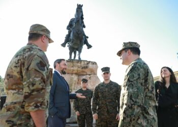 Kreu i Trupës së Marinsave të ambasadës së SHBA në Tiranë Joseph Matti u rrit në gradën Rreshter i Lartë sot gjatë një ceremonie të veçantë në Sheshin Skënderbej, ku ...